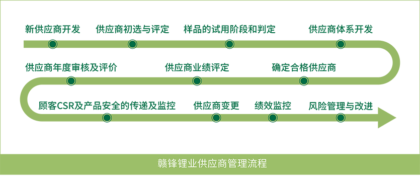 贛鋒鋰業(yè)高度重視鋰供應(yīng)鏈的安全,因為這直接關(guān)系到新能源產(chǎn)業(yè)的發(fā)展。我們將可持續(xù)發(fā)展的理念納入采購流程,積極采購環(huán)境友好型產(chǎn)品,并制定《供應(yīng)商行為準則》,從守法經(jīng)營、合規(guī)用工、資源消耗、排放控制、健康與安全、商業(yè)道德等方面引導(dǎo)和規(guī)范供應(yīng)商行為。贛鋒鋰業(yè)堅持以可持續(xù)發(fā)展為導(dǎo)向的責任供應(yīng)鏈決策,積極探索責任供應(yīng)鏈塑造工作,承擔產(chǎn)業(yè)上下游的責任傳遞,降低產(chǎn)業(yè)鏈上社會與環(huán)保風(fēng)險,確保產(chǎn)業(yè)經(jīng)濟價值與環(huán)境價值的雙重實現(xiàn)。